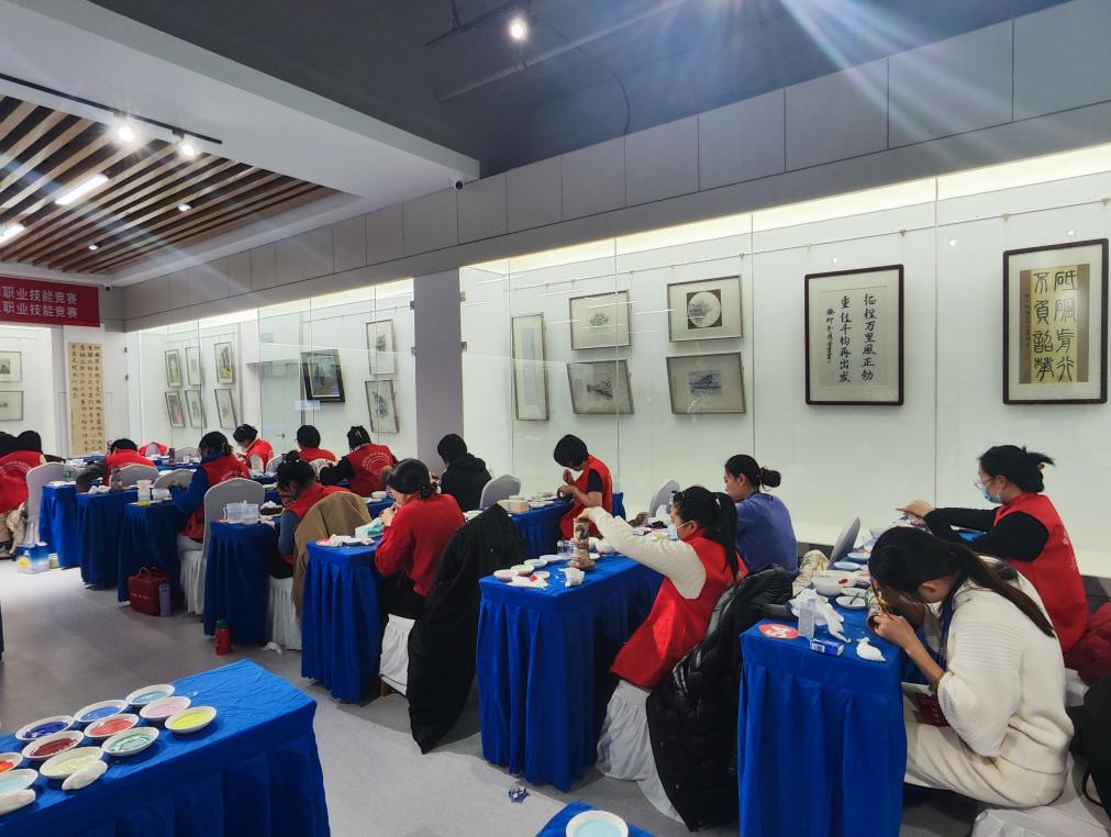 12月25日,2023年全國行業(yè)職業(yè)技能競賽“銅官府”全國景泰藍制作工職業(yè)技能競賽總決賽在銅陵職業(yè)技術學院順利舉行,副市長楊文萍和中國輕工珠寶中心副主任林旭東致辭、市委副書記、政法委書記昌宏梅宣布總決賽開幕。開幕式后領導和嘉賓們到巡視比賽現場,鼓勵參賽選手賽出好成績。